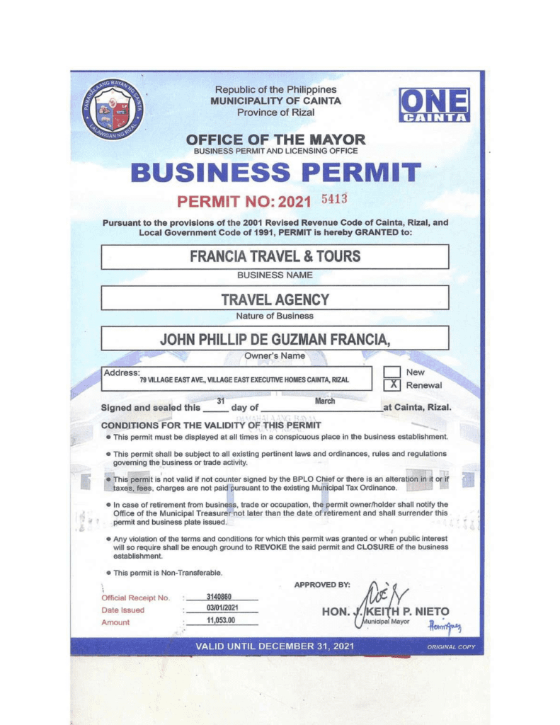 For those currently running or planning to open a small business, here is a list of essential requirements to obtain a Business Permit in your city or town:
