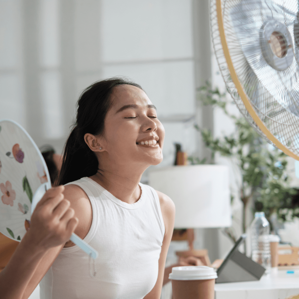 - Use Cooling Techniques – Placing a damp cloth on your pulse points, such as the wrists and neck, can help cool your body temperature quickly. Keeping a spray bottle with cool water to mist your face can also be refreshing.